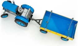 Masszív, nyomtatott bádoglemez szerkezet, műanyag kerekekkel és lekapcsolható platós pótkocsival a még több játékélményért.