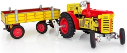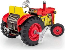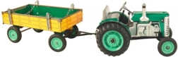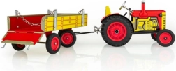 Klasszikus bádog játék kicsiknek és nagyoknak, a mezőgazdasági technika rajongóinak: Zetor traktor lekapcsolható platós pótkocsival és kulcsos rugós szerkezettel. 3 fokozatot kínál (előre, üres, hátra), működő kormányzást és kéziféket. Precíz cseh kézműves kivitel, Biztonságos játék tanúsítvány és nyomtatott bádoglemezből készült, tartós felépítés műanyag kerekekkel.
