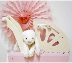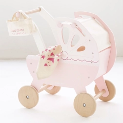 A babakocsi FSC tanúsított fából készül, kézzel utófestve környezetbarát, vízbázisú festékkel, és úgy tervezték, hogy hosszú évekig tartson – ideális darab generációról generációra való továbbadásra. Támogatja a képzelőerőt, a szociális és verbális készségeket, valamint a kognitív fejlődést.