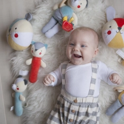 A puha textil csörgő maci finom hangingerrel és kellemes fogásélménnyel kényezteti a babát. Organikus anyagainak köszönhetően az érzékeny bőrre is alkalmas, és támogatja a finommotorika és az érzékelés fejlődését.