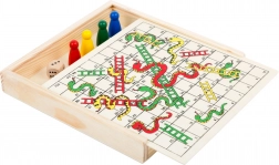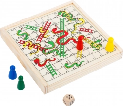 Ez a "Kígyók és létrák" társasjáték szórakozást kínál az egész családnak. A játék célja, hogy elérjük az 1-től a 100-ig, miközben meglepjük az ellenfeleinket. Ha kígyó mezőre lépünk, az út hosszabb lesz, míg egy létra mező közelebb visz a célhoz. A játék kompakt és az összes darab biztonságosan tárolva van a saját dobozában, amely egyben játéktáblaként is szolgál.