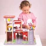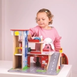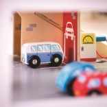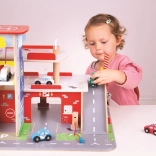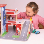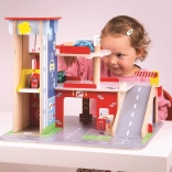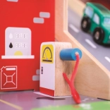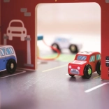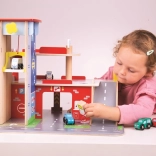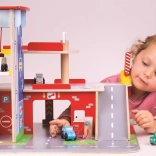 A gyerekek rengeteg szórakozást találnak a háromszintes garázs minden emeletén, parkolóval. A földszinten az autó felhajthat a működő felvonóra, majd felmehet egészen a második emeletre és leparkolhat. A földszinten szerviz, autómosó és benzinkút található. Az első emeletről az autók a felvonóval vagy a rámpán távozhatnak, de vigyázat, meg kell várni, amíg a sorompó felemelkedik! A garázs legmagasabb pontja a heliport. Ez a garázs mindent tud, amire egy kis sofőrnek szüksége van, hogy eljusson A pontból B pontba. Támogatja a kreativitást és a képzelőerőt. Fejleszti a szem-kéz koordinációt, a finommotorikát és az ügyességet. Kiegészíthető Bigjigs Toys és Bigjigs Rail kisautókkal. Felelős forrásból származó, minőségi anyagokból készült. Főbb jellemzők: 3 szint parkolóval és heliporttal, működő felvonó, szerviz, autómosó és benzinkút a földszinten.