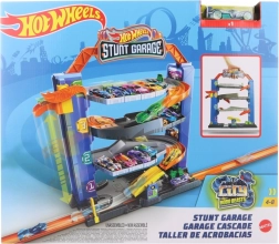 A Hot Wheels Stunt Garage az egyetlen garázs, amely lehetővé teszi az autók számára, hogy egyik szintről a másikra ugorjanak. Használd a liftet, hogy bármelyik szintre felvidd az autókat, ahol leparkolhatsz, vagy leugorhatsz az alsóbb szintre. Parkolhatsz a felsőbb szinteken, vagy „körutat” tehetsz lent. Tankolj és készítsd fel az autót a következő kalandra!