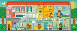 Ez a kreatív PETIT COLLAGE készlet egyesíti a puzzlet és az interaktív labirintust egy játékban, amely szórakoztat és közben fejleszt. A 10 nagy darab összeillesztése után egy hosszú ház-kép (53 × 21,5 cm) jön létre, ahol a gyerekek ujjukkal követik a kijelölt útvonalat, miközben 20 elrejtett tárgyat fedeznek fel.