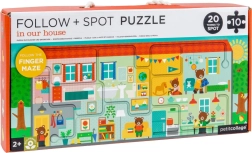 A puzzle összeállítása után a gyerekek ujjukkal követik az útvonalat a házikón keresztül, fejlesztve a koordinációt és a koncentrációt.