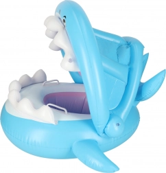 A vidám cápa dizájnú felfújható gyerek vízi fotel remek választás az első ismerkedéshez a vízzel medencében, folyóban vagy tóban. A levehető baldachin véd a naptól, míg a lábátvezetős ülés stabilan és kényelmesen tartja a gyermeket.