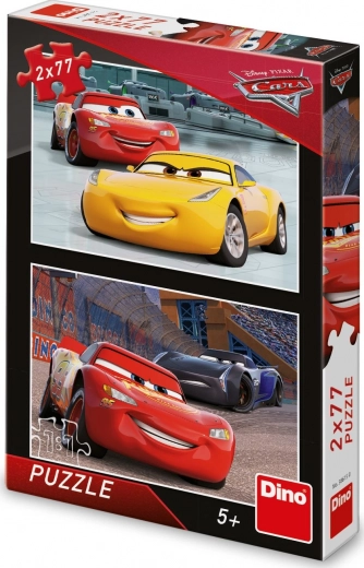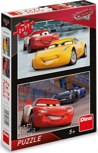 A CARS 3 film motívumaival díszített dupla puzzle csomag minden kis gyorsaságrajongónak örömet szerez. Két, egyenként 77 darabos kirakó fejleszti a kézügyességet, a képzelőerőt és a koncentrációs képességet. A minőségi karton és a Csehországban készült gyártás garantálja a biztonságos és tartós szórakozást Villám McQueennel, Cruz Ramirezzel és Jackson Stormmal.