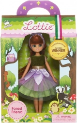 Lépj be a varázslatos világba a Lottie Erdei tündér babával. Többrétegű zöld és lila ruhája, bársony felsője és finom tüllszoknyája, amely a szirmokat idézi, minden játékot fantáziadús történetté varázsol. Vörös haja, zöld szemei és arany balerinacipői teszik teljessé a mesés megjelenést.