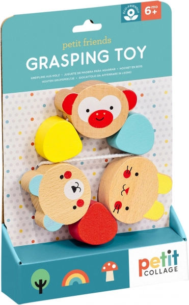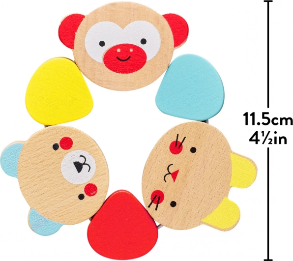 Ez a varázslatos rágóka ideális a kis felfedezőknek, akik most kezdik megismerni a körülöttük lévő világot. A rágóka hat darabot tartalmaz kemény fából, ebből három állatkás motívum és három színes forma, amelyeket erős zsinór köt össze.