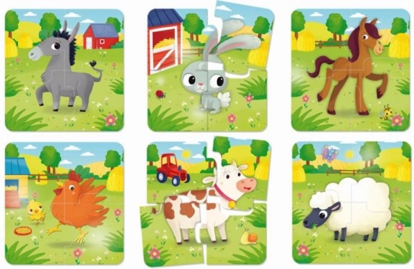 • 6 kép farm témában, 24 nagy elemből összeállítva – ideális első kirakónak.