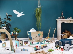 A természet által ihletett fa kocsi remek kiegészítő bármely gyerekszobába.