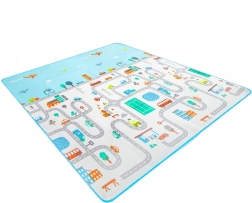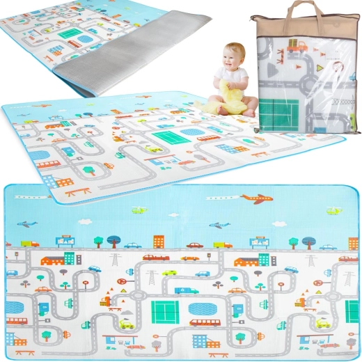A városi mintával ellátott szőnyeg biztonságos és szórakoztató teret biztosít a gyerekek játszásához. Puha és rugalmas hab nem csak szórakozást, hanem védelmet is nyújt a hideg padló ellen, miközben csillapítja a leeséseket.