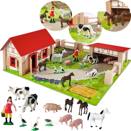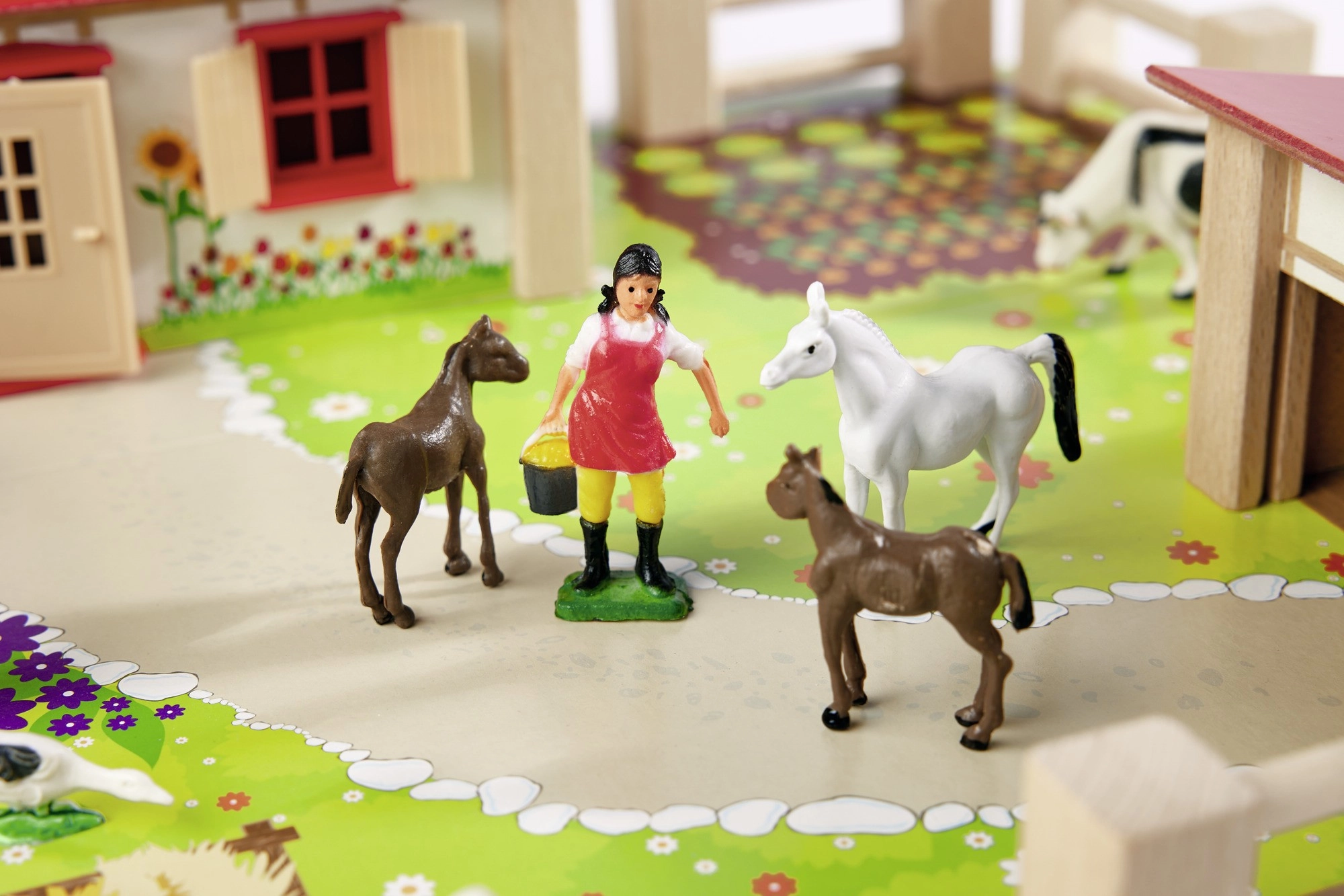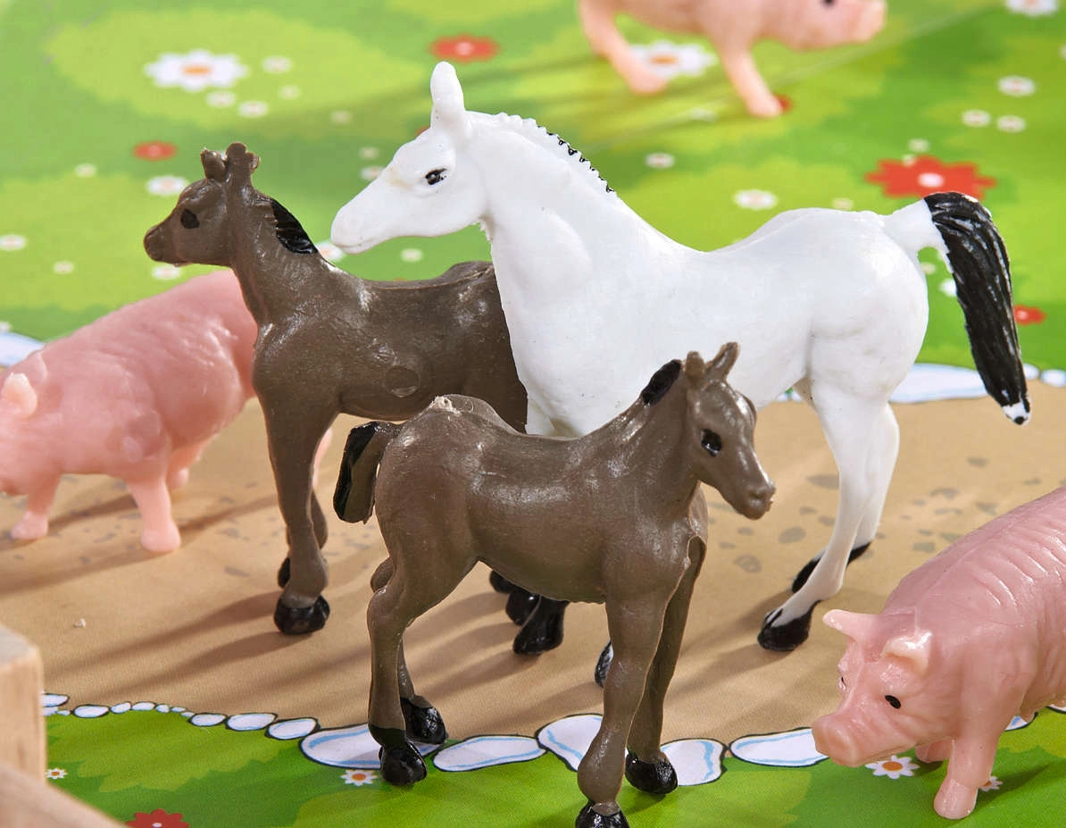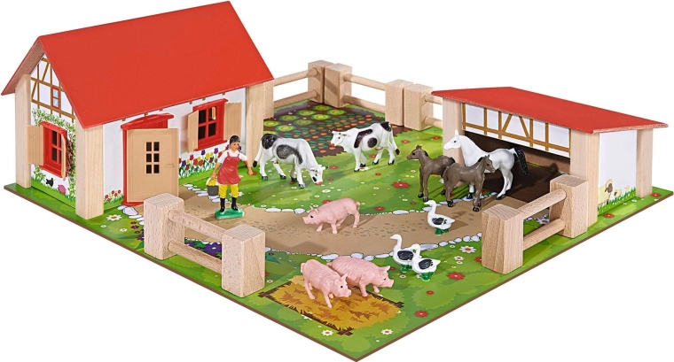 Lovak, tehenek, malackák, ludak és a gondozó serkentik a fantáziát, segítenek az állatfajok felismerésében, és fejlesztik a szociális készségeket a szerepjáték során.