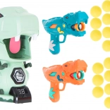 Két stílusos, dinoszaurusz alakú pisztoly lehetővé teszi a puha habgolyók biztonságos és hatékony lövését. Ideális páros játékokhoz és versenyekhez.