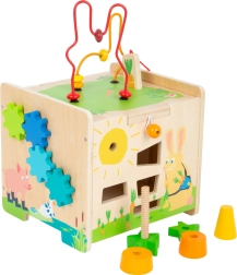 A gyöngylabirintus, a formabedobó, a fogaskerekek, a csúszkás útvesztő és a beépített xilofon fejleszti a gyerekek motorikáját és fantáziáját.