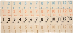 A masszív fa lapkák számozott nyomattal és szimbólumokkal jól olvashatók és kellemes tapintásúak. A kombinációk kirakásakor a enyhén ívelt fa tartók gondoskodnak a stabilitásról és a diszkrécióról. A játék fejleszti a logikus gondolkodást, a stratégiát és a koncentrációt minden korosztály számára.