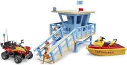 A mentőtoronnyal a Bruder márkától tökéletesen áttekinthető lesz a part eseményei, és a biztonság garantált. A készlet tartalmaz levehető tetőt és valósághű kiegészítőket, mint például quad kerékpárt és vízi robogót, amelyek képesek úszni a vízben.