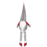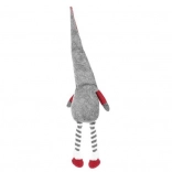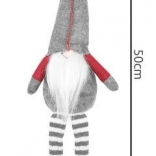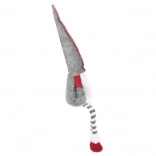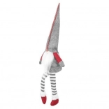 A szürke-piros textil dekor manó jellegzetes, magas, hegyes sapkával, hosszú csíkos lábakkal és puha fehér szakállal rendelkezik. A hátoldali speciális profilnak köszönhetően stabilan ül asztal vagy polc peremén, és meghitt, otthonos hangulatot ad a belső térnek.