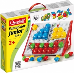 A Fantacolor Junior Basic ideális didaktikai játék óvodások számára. A gyerekek a nagy, színes gombokat a minták szerint vagy saját fantáziájuk alapján helyezik a lyukakba, miközben játékos formában gyakorolják a szem-kéz koordinációt, a színfelismerést és a logikus gondolkodást. A masszív kivitelezésnek és a biztonságos méreteknek köszönhetően a mozaik már 2 éves kortól ajánlott.