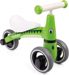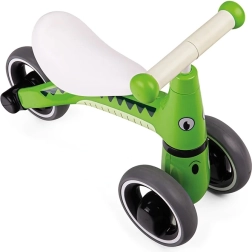 A bájos Diditrike krokodilos bébitoló aktív mozgásra és játékra ösztönzi a gyerekeket. Az alacsony, széles ülés és a stabil, négy kerék magabiztosságot ad az első gurulásokhoz, míg az ergonomikus kormány puha markolatai kényelmes fogást nyújtanak. A sima kerekek csendesek és kíméletesek a padlóhoz, így lakásban és a kertben is ideális.