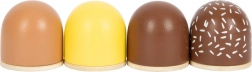 Négy praliné változat - fehér csokoládé, étcsokoládé, étcsokoládé szórással és tejcsokoládé - kellemesen frissítik a gyermekjátékokat. Természetes megjelenésük és öko karton csomagolásuk úgy lett kialakítva, hogy lenyűgözzék és inspirálják a gyerekeket a képzeletbeli játékhoz.