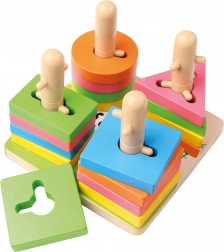 A játék ideális első lépés a logikus gondolkodás felé – a gyerekeknek a kivágásokat kell igazítaniuk és helyesen felfűzniük a formákat. A tartós fa kivitel és a sima élek biztonságot és hosszú élettartamot nyújtanak. Remek választás önálló játékhoz és közös tanuláshoz a szülőkkel.