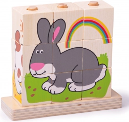 Kilenc kockából négy különböző állatos motívum rakható ki, amelyek ösztönzik az ismételt építést, és támogatják a logikus gondolkodást és a vizuális észlelést.