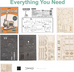 Ez a fa 3D puzzle elektromos gitár minden zenerajongónak és az elegáns dekorációk kedvelőinek örömet okoz. A modell kiállításra készült – mozgó alkatrészek nélkül, letisztult, természetes megjelenéssel és precízen kivágott részletekkel, amelyek bármely enteriőrben jól érvényesülnek.