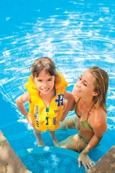 Tanítsd meg gyermekeidet könnyedén és biztonságosan úszni ezzel az INTEX márkájú gyerek úszómellénnyel. Tartós PVC-ből készült, és a biztonságra és szórakozásra összpontosító kialakítás.