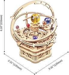 Ez a mechanikus 3D modell ideális kíváncsi alkotóknak, csillagászatrajongóknak és a design kiegészítők szerelmeseinek. Az építés közben fejlődik a képzelőerő, a részletek iránti érzék és a logikus gondolkodás. A hatásos dallamnak és a dekoratív megjelenésnek köszönhetően a modell bármely enteriőr markáns eleme lesz.