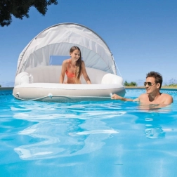 Az INTEX felfújható sziget tökéletes hely a vízparti pihenéshez. A levehető és állítható napellenző kellemes árnyékot ad, amikor erősen süt a nap, napozáshoz pedig könnyen eltávolítható. A tágas felület és a formázott háttámlák kényelmet nyújtanak hosszú órákon át.