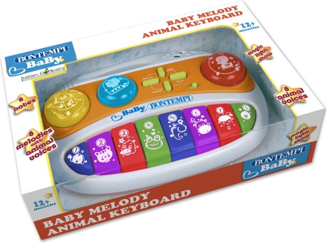 Baby Melody zenélő doboz 8 billentyűvel rengeteg szórakozást és zenei lehetőséget kínál a kisgyermekek számára. Az egyszerű kezelhetőségnek és a változatos dallamoknak köszönhetően minden gyermek kedvenc játékává válik.