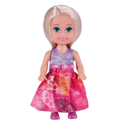 A babának színes, csillogó ruhácskája van virágos részletekkel, amelyek beragyogják minden gyerek gyűjteményét, és támogatják a fantáziajátékot.