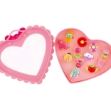 A gyűrűk készlete ideális azoknak a kis hercegnőknek, akik szeretik a divatot, és mindegyik ujjukra más gyűrűt szeretnének. Mindegyik 12 gyűrű egyedi dizájnnal rendelkezik, amelyek közé tartozhatnak virágok, gyümölcsök, masnik vagy állatkák.