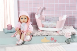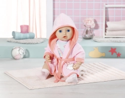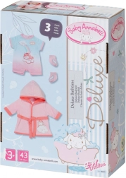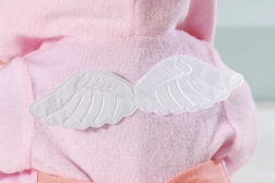Hagyd, hogy Baby Annabell varázslatos pillanatokat éljen át ezzel a divatos köpeny és pizsamával. A köpeny szárnyakkal van díszítve, ami nemcsak divatos, hanem kényelmes kiegészítő is a játékhoz. A köpeny alatt a baba rövid overallt visel, amely bárányt ábrázol, amint élvezi a szivárványos zuhanyt. Hogy a baba lábai szépen melegek legyenek, a szett rózsaszín zoknit is tartalmaz szárnyak mintával.