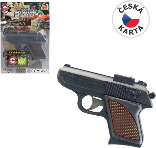 Ez a kompakt golyós pisztoly minden kis kalandornak örömet okoz. Könnyű műanyag kialakításának köszönhetően könnyen kézben tartható és kezelhető, ezért remek választás az első célbalövős játékokhoz. Bliszteres kártyán, cseh dizájnnal csomagolva, apró ajándéknak vagy jutalomnak is kiváló.