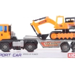 Műanyag teherautó kotrógéppel, mérete kb. 28 × 10,5 × 8 cm. A csomag mérete kb. 32 × 13 × 9 cm. Korosztály: 3+