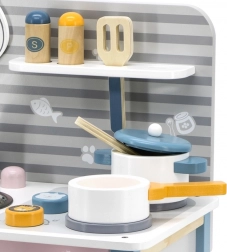 Kiváló kialakítással készült, a konyhát tűzhellyel, sütővel és mosogatóval látták el, ami tökéletes teret biztosít a képzeletbeli játékokhoz. Az olyan elemek, mint az akasztós kampók és a polcok a konyhai eszközök számára hitelességet adnak a játéknak.