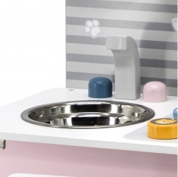 A konyha biztonságos játékra van tervezve három éves kortól, támogatja a finommotorika fejlődését és az utánzási képességet.