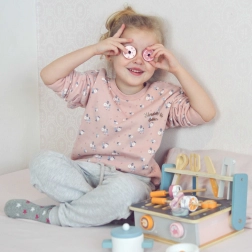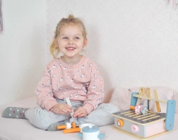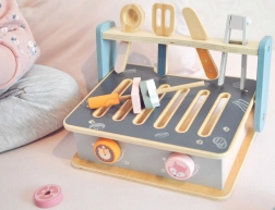 Ez a stílusos, 2 az 1-ben fa játékkonyha ötvözi a klasszikus főzést a grillezéssel. Összecsukható kialakításának köszönhetően könnyen igazítható a rendelkezésre álló helyhez és a kis szakács igényeihez. A két főzőlap a forgatható gombokkal valósághű hangulatot ad a játéknak, miközben fejleszti a finommotorikát és a képzelőerőt.