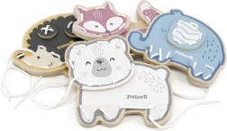 Fedezze fel a szórakoztató PolarB fűzős állatka készletet, amely fejleszti a finommotorikát, a kéz–szem koordinációt és a türelmet 3 éves kortól. Négy aranyos fa figura (medve/kutya, róka/macska, elefánt és sün) előre kifúrt lyukakon át fűzhető zsinórokkal, ami remek oktatójáték az első készségekhez és értelmes, képernyőmentes játékhoz.