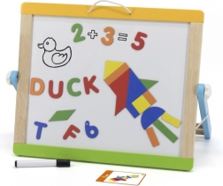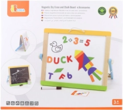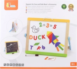 A Viga kétoldalas mágneses tábla szórakoztató és oktatási eszköz a gyerekek számára. Több mint 80 elemet tartalmaz, amelyek magukban foglalják a mágneses betűket, számokat, geometriai alakzatokat, utasításkártyákat, krétakészletet, törlőszivacsot, filcet, papírtekercset és tárolózsákot. A tábla egyszerűen összeszerelhető, ami megkönnyíti a tárolást és hordozást. Egyik oldalán krétatábla, másik oldalán mágneses tábla filc írási lehetőséggel.