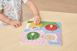A puzzle élénk színű, ami biztosítja, hogy a gyermek szívesen játsszon vele és érdeklődését fenntartsa.