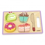 Minden desszert több részre oszlik, melyeket tépőzár köt össze – a gyerekek „vághatnak” és újra összerakhatnak, így gyakorolják a fogást és a koordinációt.