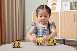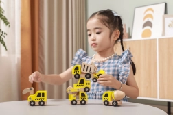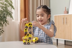 Minden jármű funkcionális kerekekkel rendelkezik a sima gurulásért, és egyes részek mozgó elemeket idéznek (pl. kanál, keverő vagy daru), ami ösztönzi a természetes kíváncsiságot és a szem–kéz koordináció fejlődését.