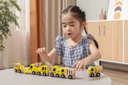 Ez a minőségi készlet 6 különböző építőjárművet tartalmaz élénk sárga színben, természetes fa elemekkel – ideális az első padlón zajló versenyekhez és az építkezéses szerepjátékhoz. A lekerekített formáknak és a strapabíró fa szerkezetnek köszönhetően az autók biztonságosak és kellemes tapintásúak.