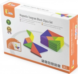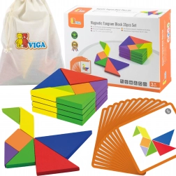 Fedezze fel a gyerekeknek szánt szórakoztató logikai játékot – a VIGA fa tangramot. A színes geometriai elemek és a mintakártyák támogatják a logikus gondolkodást, a kreativitást és a finommotorikát. A minőségi, FSC tanúsítvánnyal rendelkező fa és a nem mérgező festékek biztonságos játékot biztosítanak, miközben a gyerekek koncentrációt, valamint a színek és formák felismerését gyakorolják a Montessori-elvek szellemében.