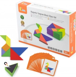 Ez a színes fa tangram ideális segédeszköz otthoni játékhoz és óvodai foglalkozásokhoz. A gyerekek a mellékelt kártyák szerint vagy saját fantáziájuk alapján rakják ki a képeket, fejlesztve ezzel a térbeli képzelőerőt, a kreativitást és a problémamegoldó képességet. A gondosan megmunkált, tömör fadarabok kellemes fogásúak és strapabíróak a mindennapi használathoz.