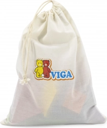 A sima, fából készült geometriai formák matt, nem mérgező festéssel biztonságosak és kellemes tapintásúak. Segítik a színek és formák tanulását, valamint a finommotorika fejlődését.