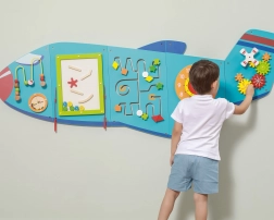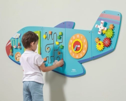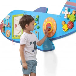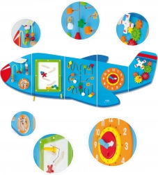 Fa fali tábla Repülő a VIGA márkától egy többfunkciós játék, amely öt részből áll, és együtt repülő alakot formáz. Minden elem különféle tevékenységeket kínál a gyermekek szórakoztató készségfejlesztésére: